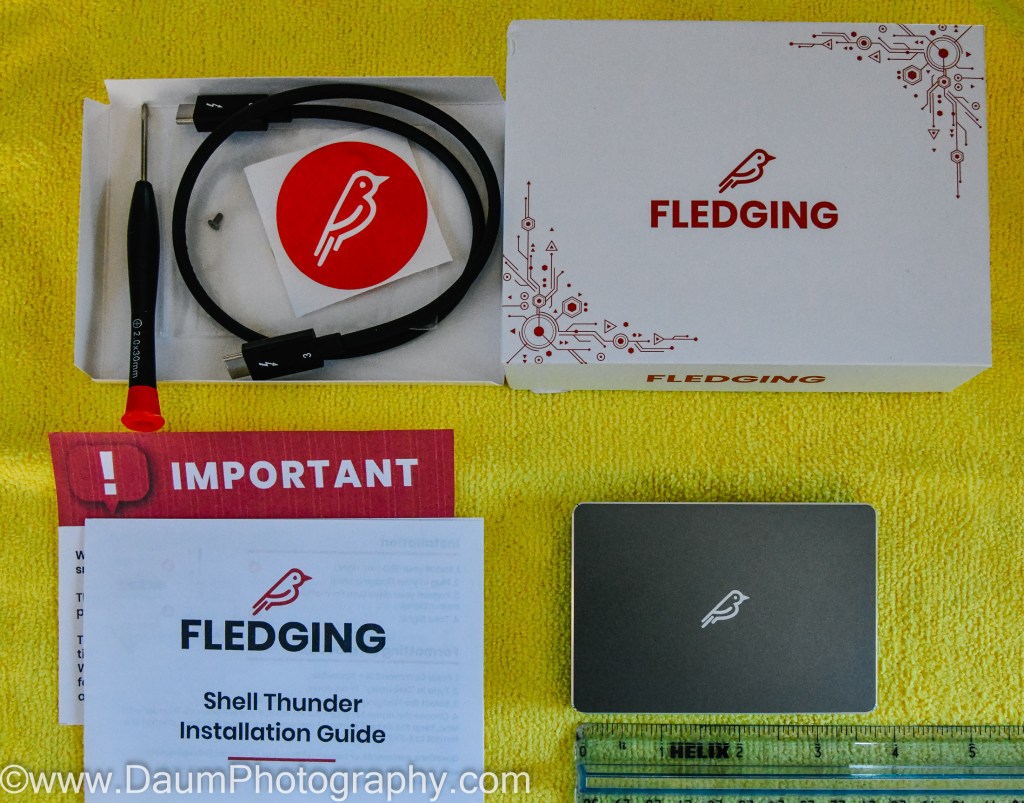 I was supplied a Fledging Shell Thunder-Thunderbolt 3 SSD Enclosure with a 1TB NVMe M.2 2280 SSD already installed, by Fledging’s Brand Manager for review.