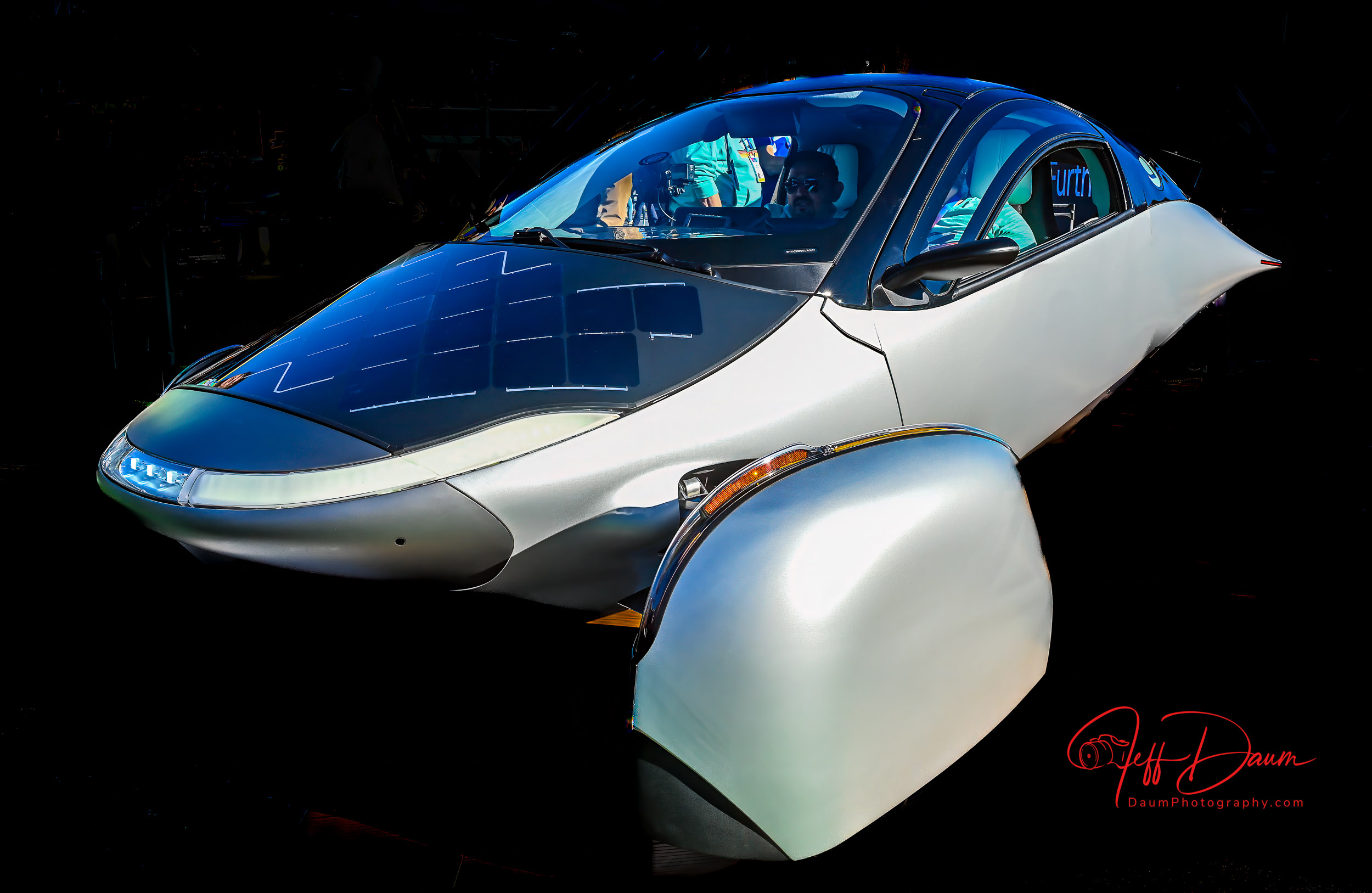 This is an initial look at the Aptera all electric solar vehicle presented at the 2025 CES (Consumer Electronics Show) in Las Vegas, Nevada.