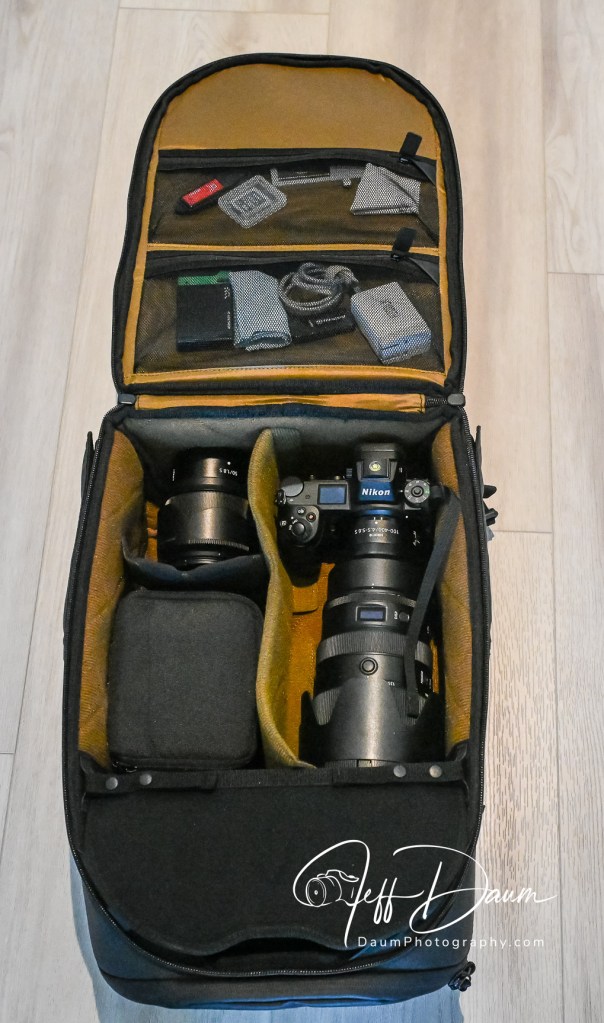 My initial impressions are that the McKinnon 25L Camera Pack is well thought out and highly practical for most photographers.  I set out with it fairly loaded at more than 20 pounds of equipment including two Nikon Z7s, one with a Nikkor 28-120 mm zoom attached and the other with a Nikkor 100-400 mm zoom attached, a Nikkor 50 mm lens, an LG laptop and miscellaneous chargers and cords.