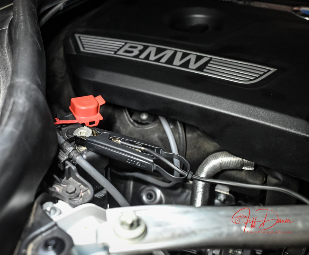 I tested out the CS ONE (GEN 2) by connecting it to BMW X3 which has a seven-year-old OEM AGM battery.  The battery is located under the trunk floor, but the X3 has a dedicated positive and negative terminal in the engine bay.  I connected the CS ONE (GEN 2) battery clamps to these terminals.