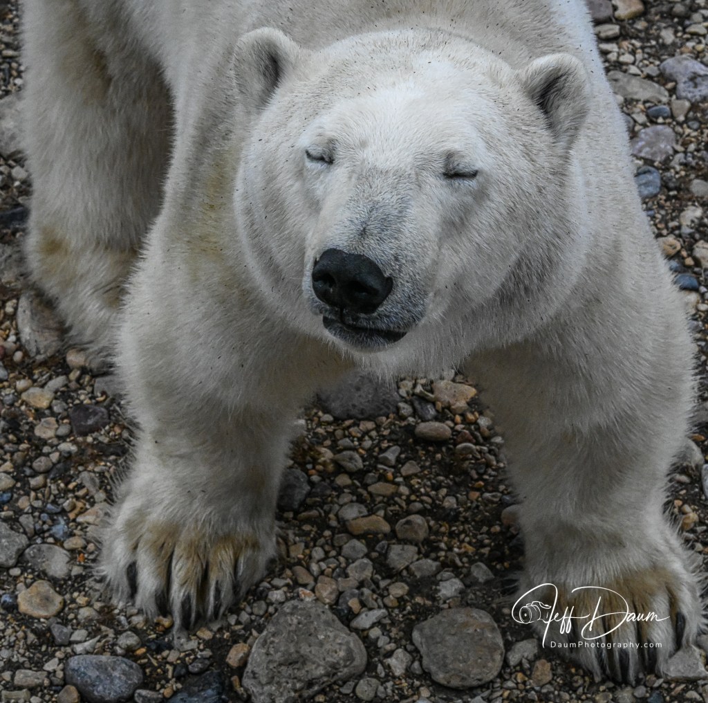 Based on what I observed, along with talking to our local guide, and to renown polar bear expert Matthias Breiter, they are highly curious, basically gentle giants. They do not roar even when jostling. Polar Bears don’t normally attack people but do go after opportunistic food caches and because of these present problems around towns.